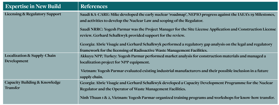 - Mentor local teams and nuclear regulator inspectors- including regular lessons learned sessions.