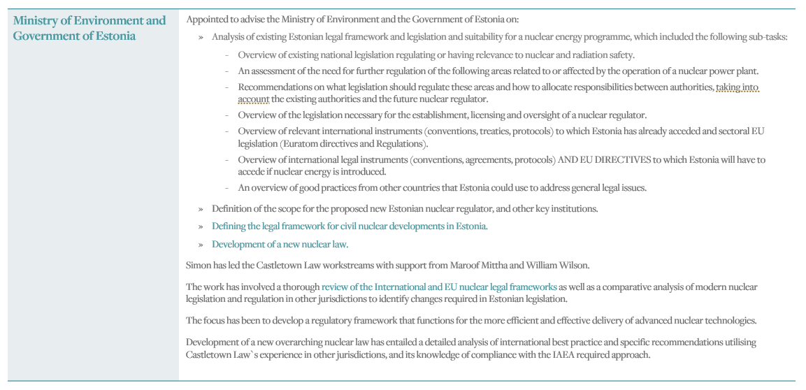 - As set out in this presentation Castletown Law and its associates act as a single-source resource to support the government and developers thorough these mandatory steps and to support the deployment, commission and operation of civil nuclear assets.